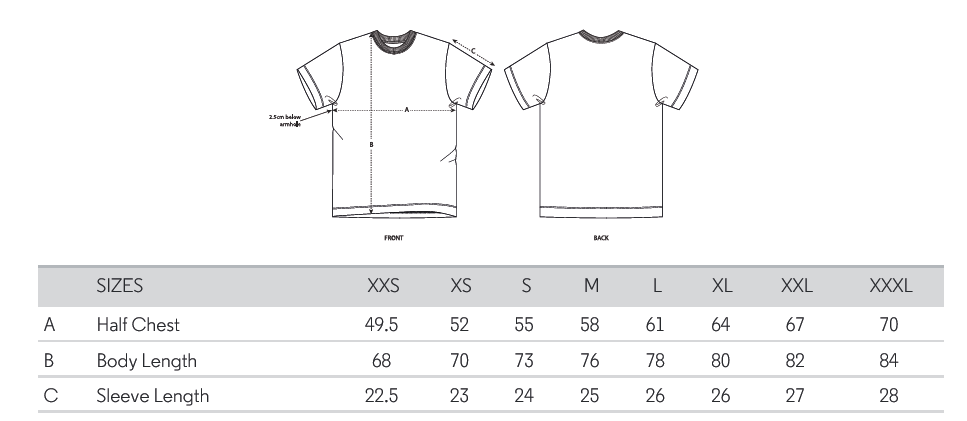 XXS XS S M L XL 2XL 3XL